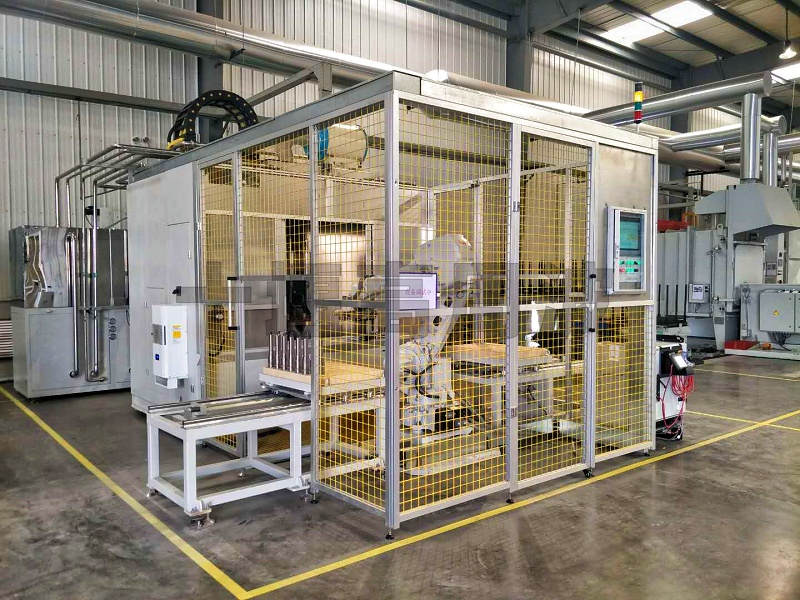工作方式:可選配自動料倉+機(jī)器人的上料,淬火為感應(yīng)器移動的工作方式,淬火機(jī)床可選配單工位立式、雙工位立式結(jié)構(gòu)。